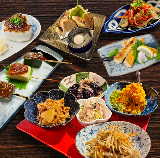 看板メニューのおばんざいの盛り合わせはもちろんのこと、サラダや揚げ物、季節感が味わえるお料理が揃っております。