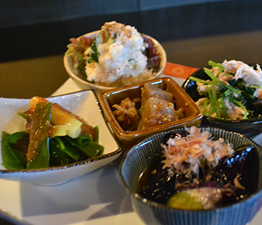 オーナーのお任せで5種類のおばんざいを盛り合わせでご用意いたします。季節ごとに変わるおばんざいをお楽しみください。