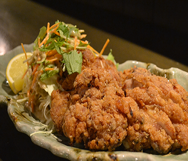 にんにく醤油で漬け込んだもも肉を、豪快に揚げました。